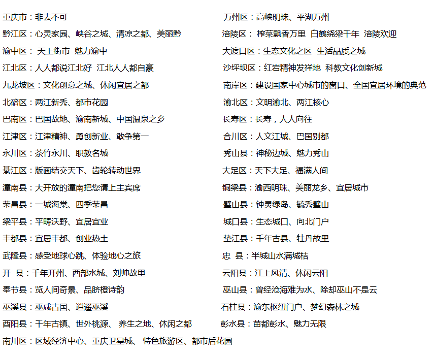 重慶市及區 縣文化推廣 宣傳語(yǔ)賞析