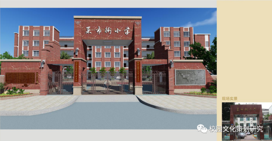 2、主體圖形似菜市街小學(xué)這所百年老校的區位地圖,象征著(zhù)學(xué)校有如陽(yáng)光般開(kāi)放、大氣、包容、溫暖的生長(cháng)環(huán)境,師生在此本心光明,德行顯達。