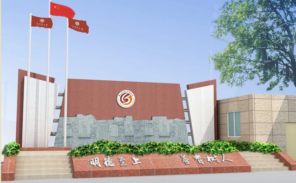 校門(mén)是一個(gè)學(xué)校的門(mén)面,此次設計在保留原有造型的基礎上,對校門(mén)進(jìn)行了美化,左側是《學(xué)校賦》、右側則是“明德至上,善育樹(shù)人”的文化浮雕,明確傳遞學(xué)校歷史及文化理念,意在勉勵師生,要立德修身、明理知禮、好學(xué)樂(lè )學(xué),爭做道德深厚之人。