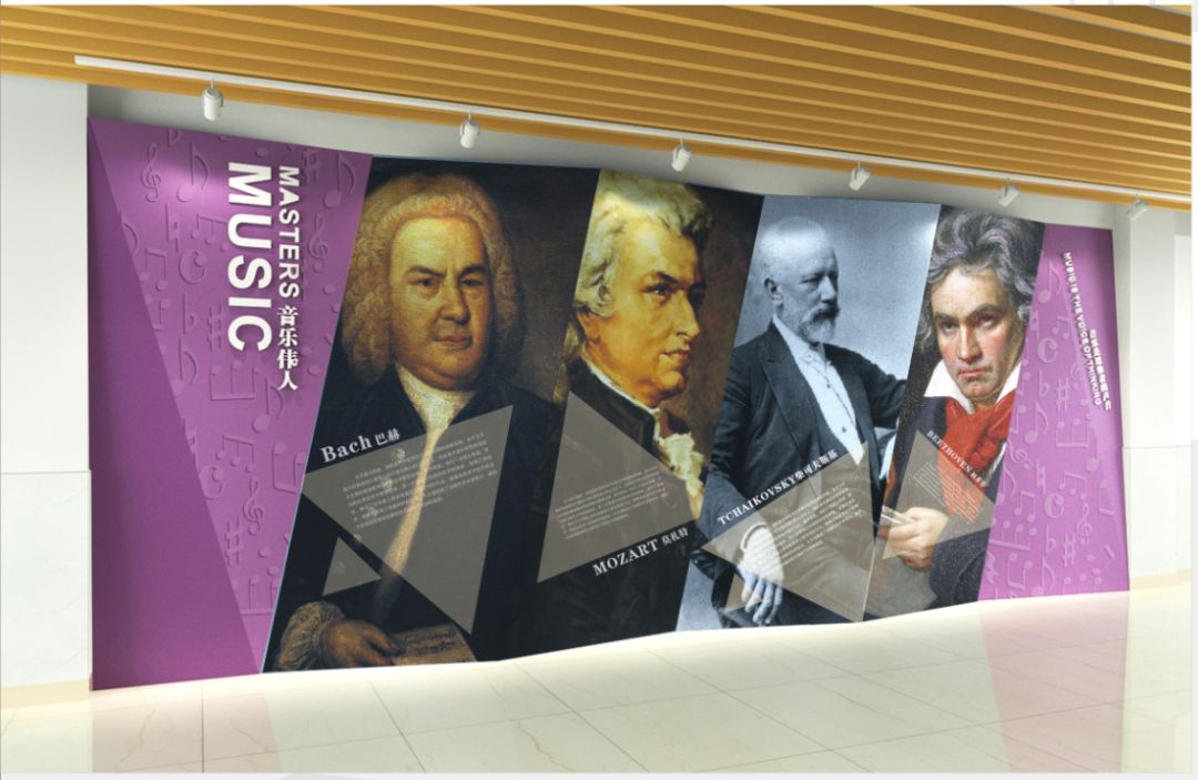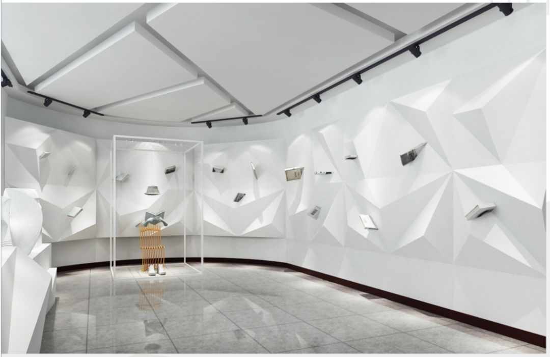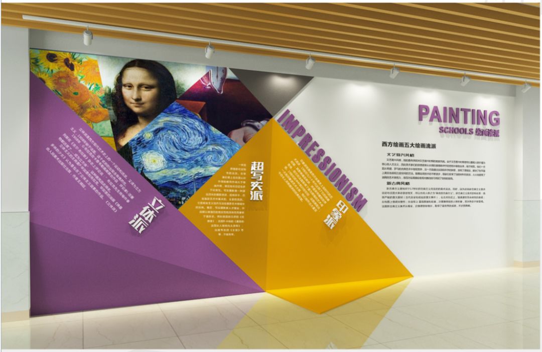 最上方采用曲線(xiàn)石膏板描繪出浩瀚的藝術(shù)長(cháng)河,
