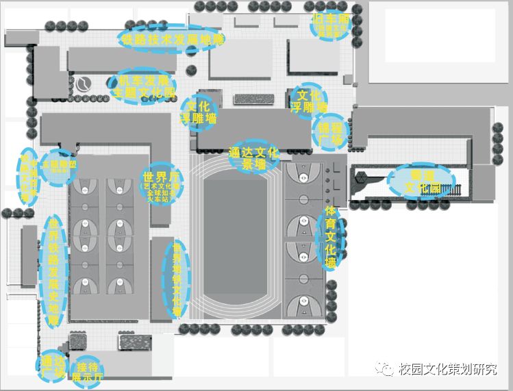 校園環(huán)境打造以“通達”的核心理念和“鐵路”文化為主,從學(xué)校的地域文化、厚重歷史以及鐵路的發(fā)展歷史、機車(chē)發(fā)展史、鐵道文化、鐵路技術(shù)等方面設計主題園、雕塑小品、文化墻、導視系統等,從而將學(xué)校的核心理念深深地融入進(jìn)校園的方方面面。