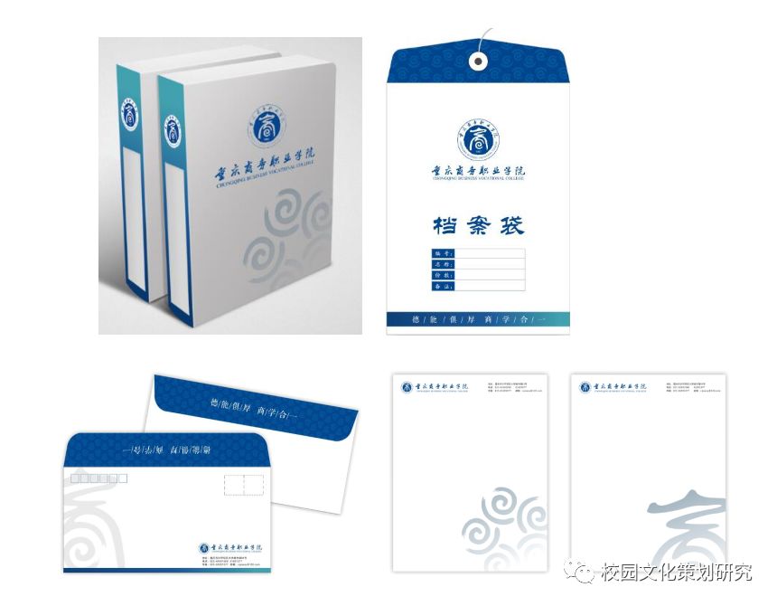 4、標志主體圖形的藍色背景創(chuàng)意為一個“印章”,旨在與校名的書法風格一致。