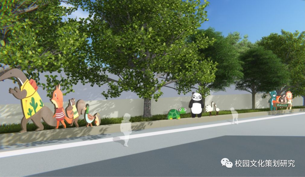 櫥窗設計則是在圍欄上用新芽的形式來(lái)展示園務(wù)之窗,既不占地勢,也使其具有功能性。