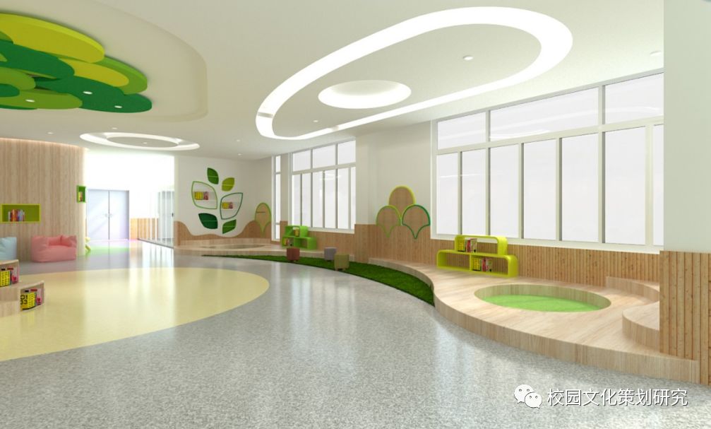 設計師對大廳進(jìn)行分區,依據“夢(mèng)想發(fā)芽”的主題,從“種子”到“新芽”,再到“眾樹(shù)成林”,大樹(shù)的成長(cháng)過(guò)程也象征著(zhù)孩子夢(mèng)想和自身的成長(cháng)過(guò)程,體現了學(xué)校的“心芽”文化。