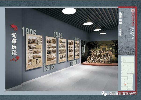 ◆采用傳統展示手段與數字光影多媒體展示相結合的的方式,依靠仿真、還原、投射以及虛擬等技術(shù)效果,全方位、立體化地展現學(xué)校的百年歷程及累累碩果。