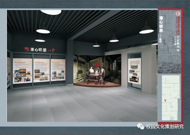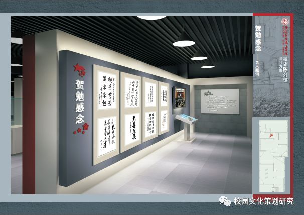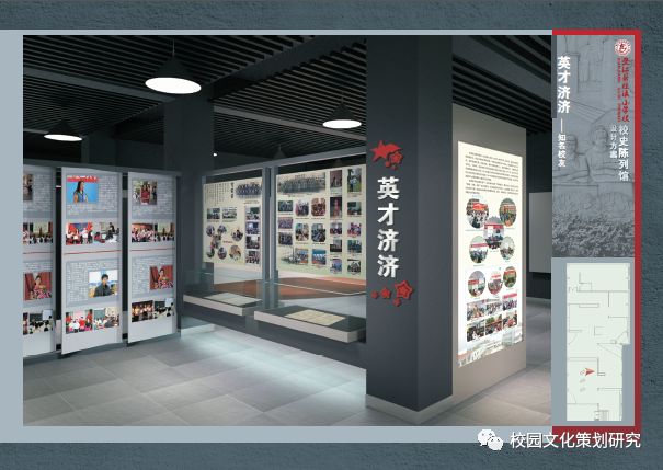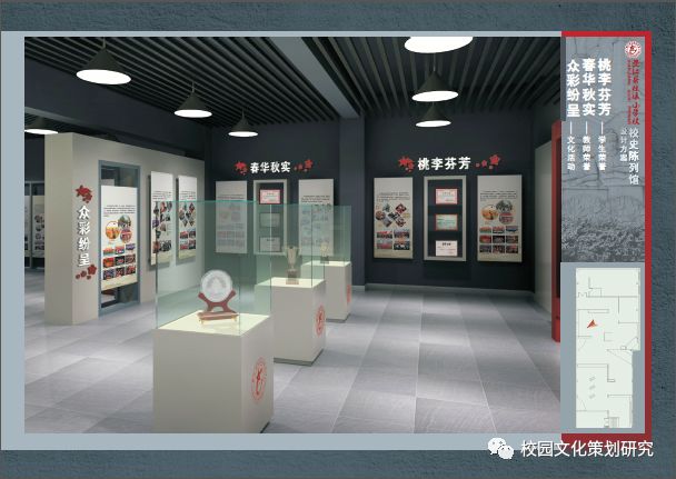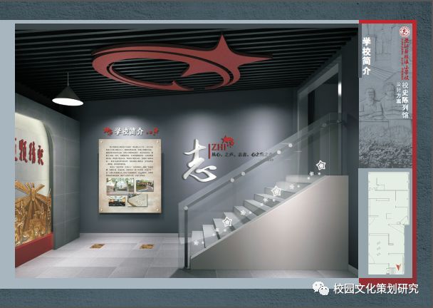 通過(guò)對校方建設校史館意義及目標的分析,首先我們?yōu)楣鹣W(xué)校史館建設提出了設計主題“勵志篤學(xué),立德立人”。在此文化主題統領(lǐng)下,通過(guò)運用合理的設計語(yǔ)言,將此校史陳列館塑造成具有時(shí)代氣息,又不失濃厚文化氛圍的現代展館。