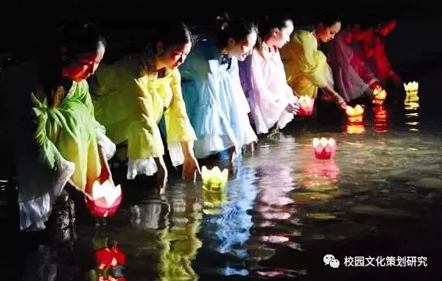 河燈也叫“荷花燈”,一般是在底座上放燈盞或蠟燭,放在江河湖海之中,任其漂泛。寄托對親人的緬懷之情,表達對幸福、平安的祈求,希望隨著(zhù)長(cháng)流水,祛除疾病災禍,子孫幸福安康。