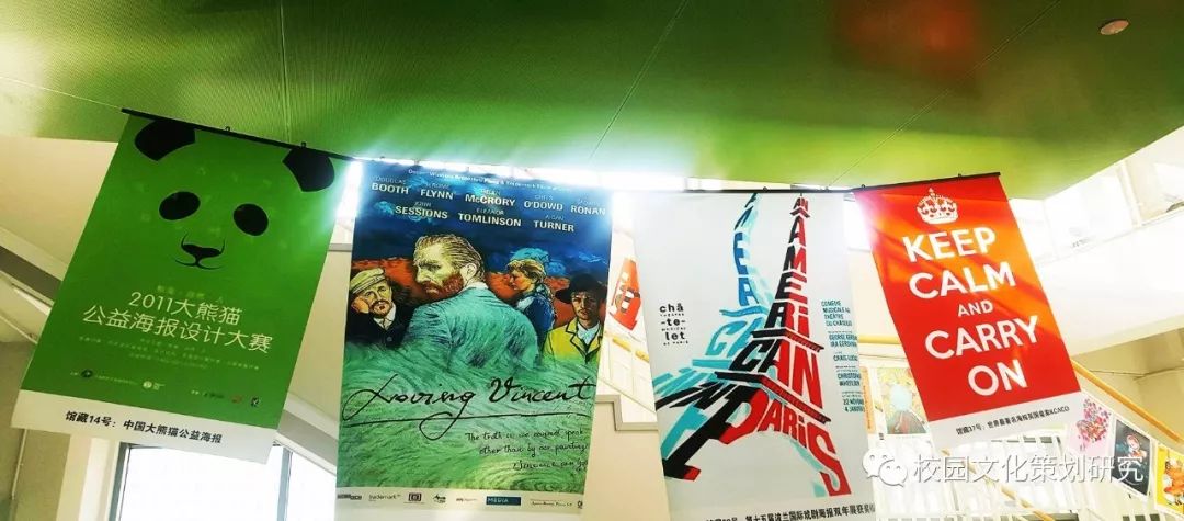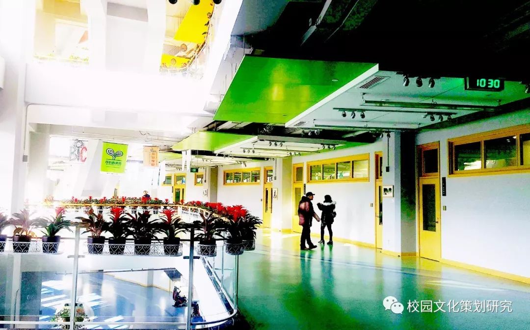 以體育館為中心,我們一行人沿著兩側(cè)進(jìn)行參觀,這是一片多功能學(xué)習(xí)區(qū)域。如體能訓(xùn)練館,室內(nèi)放置著各種健身器材;身心健康館,門口布置了張貼著學(xué)生運(yùn)動(dòng)照片的展示墻,墻體由木板塊拼接而成,靈活多變;教師餐廳,亦可臨時(shí)用作小型會(huì)議場(chǎng)地;舞蹈排練廳,門口的展示墻還是一貫的實(shí)木素色塊狀,凸凹有別,展示著學(xué)生舞蹈表演時(shí)的精彩鏡頭。墻上還有一些八音盒裝置,搖動(dòng)搖桿,每一個(gè)小模塊的音樂都有不同;管弦樂排練廳,各種樂器是應(yīng)有盡有。樓道為開放式的,沒有走廊,旁邊的大空間部分,多用來上室內(nèi)體育課,同時(shí)也是學(xué)生餐廳,其桌椅平時(shí)堆在一旁。桌椅是折疊連接,且?guī)в谢?,就餐時(shí)才依次排開。沒折疊的用餐桌椅留有一小部分,用于臨時(shí)用餐或者休息討論;民樂排練廳,能容納八十人左右;小型報(bào)告廳,可舉行小型會(huì)議,社團(tuán)活動(dòng)等。最令人驚艷的是,地下一層的墻壁還設(shè)計(jì)了校史展示墻,其它墻壁四周則掛了若干歷代山水畫,這些充分利用場(chǎng)地的設(shè)計(jì)手段足以讓我們這一行人嘆為觀止。