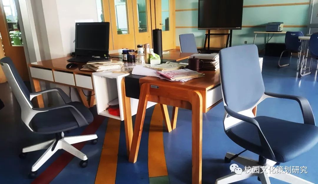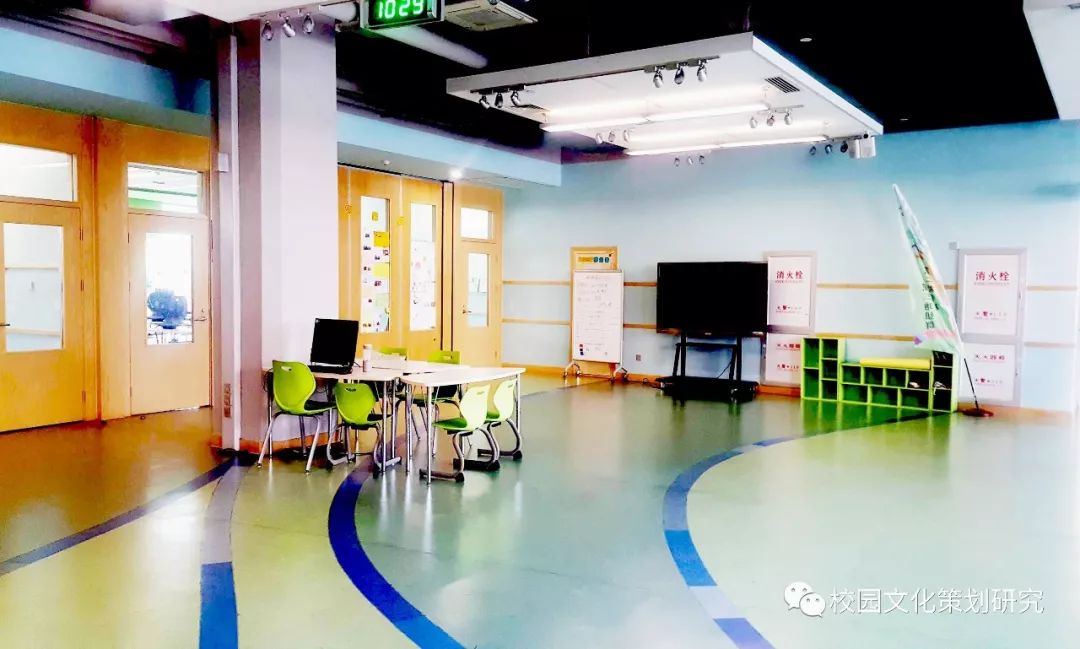 走在一樓至四樓的樓道里,隨處是“家”一般的學(xué)習(xí)和成長(zhǎng)空間,在這里,你絕不會(huì)看見慣常的長(zhǎng)長(zhǎng)走廊一邊或兩側(cè)一間間并列的格子間教室,夠驚奇吧,因?yàn)檫@里是“三室一廳一衛(wèi)”“家”的格局。這還是我們印象當(dāng)中的教室嗎?當(dāng)然不是!這是遵循世界最佳學(xué)校教育知識(shí)和實(shí)踐、符合兒童終身發(fā)展的獨(dú)特“班組群”的空間設(shè)計(jì)。據(jù)介紹,這樣一個(gè)班級(jí)群是由三個(gè)班級(jí)構(gòu)成,分別是四年級(jí)一個(gè)班,五年級(jí)一個(gè)班,六年級(jí)一個(gè)班。三個(gè)班級(jí)挨著,班級(jí)間是可移動(dòng)隔斷,每周一次主題項(xiàng)目式學(xué)習(xí),三個(gè)班級(jí)把隔斷打開,分組共同學(xué)習(xí),高年級(jí)帶動(dòng)低年級(jí),最后完成報(bào)告,撰寫論文,或制作作品等。需要上各自文化課的時(shí)候再將隔斷合上,每一層大概有這樣的班級(jí)群四到五個(gè)。而且,每個(gè)班級(jí)組群還有自己的LOGO和旗幟。主科教師和班主任沒有辦公室,就在班級(jí)群的門口辦公,這樣可以時(shí)刻觀察教室情況,隨時(shí)準(zhǔn)備答疑解惑。