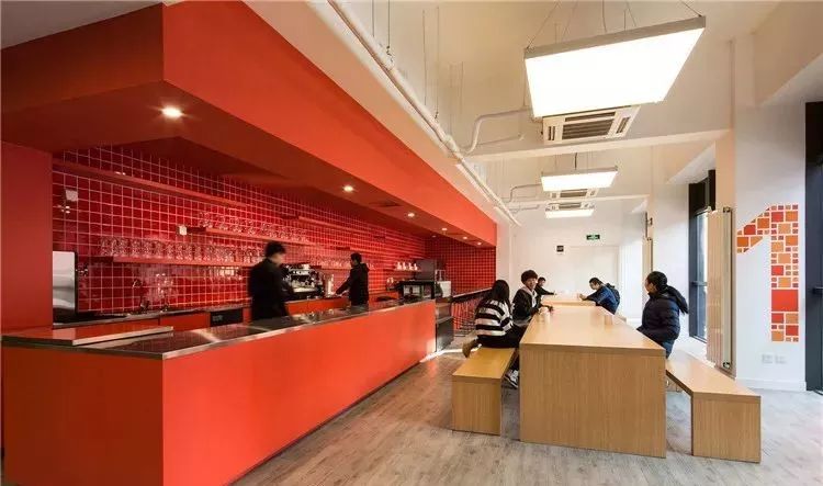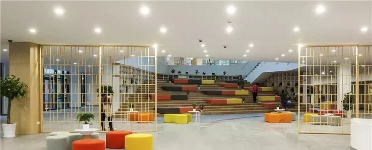 食堂不是只能吃飯的地方,桌椅也可以自由組合,學(xué)生可以討論項目,偶爾也可以作為演出場地使用。走廊也不是單純的過道,會有異形沙發(fā)供學(xué)生休息聊天。