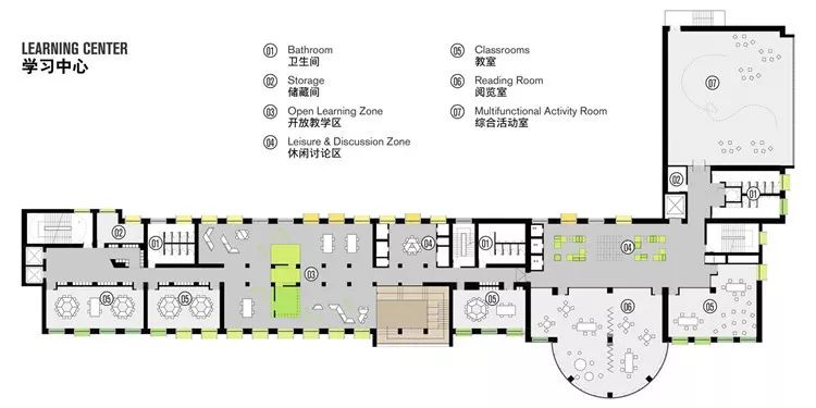 當學(xué)校以學(xué)生為中心來設(shè)置它的一切組織、課程時,就會發(fā)現(xiàn)建筑的功能也在隨之發(fā)生改變。所有教育空間是要服務(wù)于學(xué)生的,應(yīng)該給予學(xué)生更多的自由活動。