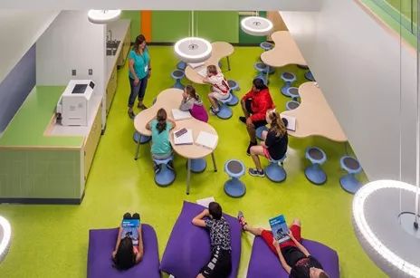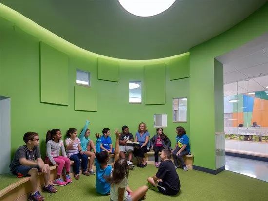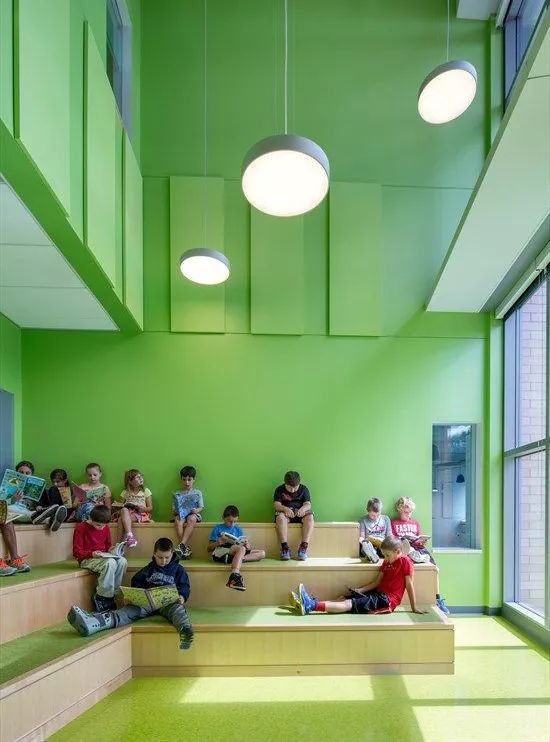 綠色是一種代表安全、平靜、舒適感的顏色,它既不是冷色,也不是暖色,而是一種居中的顏色,代表著清新、希望。在綠色環(huán)境中能提高情緒、活力和愉悅感。有助于營造舒適安逸的學(xué)習(xí)空間,同時較大面積的綠色會讓孩子更容易靜心的思考。