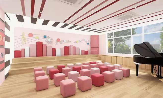 粉色是優(yōu)雅、浪漫、溫柔、甜美、沒有壓力、可以軟化攻擊、安撫浮躁的獨(dú)特色彩。比起粉紅色的浪漫,桃紅色是更為灑脫、大方的色彩。在校園環(huán)境中,大面積使用粉色可以讓學(xué)生的心靈變得更加柔和。