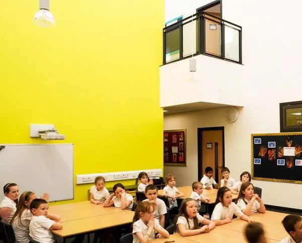 黃色是明度極高的顏色,能刺激大腦中與焦慮有關(guān)的區(qū)域。而艷黃色有信心、聰明、希望的象征意義;淡黃色則有天真、爛漫、嬌嫩的象征意義。在校園環(huán)境建設(shè)中,利用黃色打造空間會給學(xué)生帶來歡樂和天真爛漫的視覺心理感受。