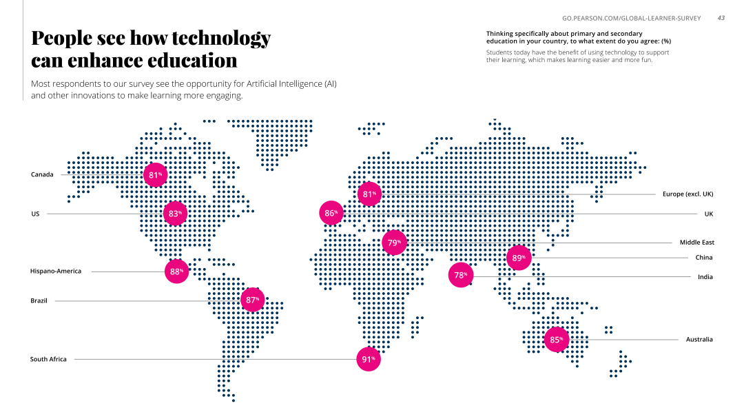 2019年5月,皮爾森對來自19個(gè)國家的11,000名學(xué)習(xí)者開展了問卷調(diào)查,這是世界上少有的如此大規(guī)模的教育調(diào)查。