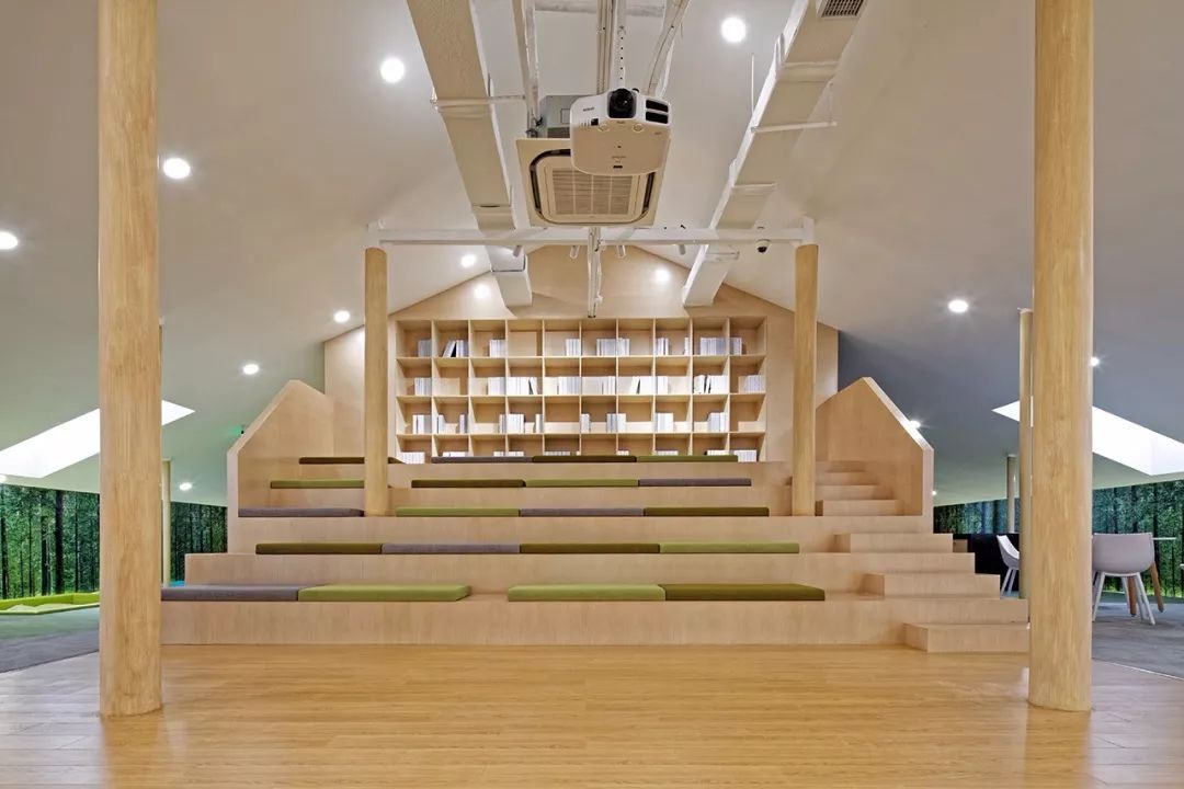 密布的立柱如同森林中的樹木,設(shè)計師將其巧妙地與房間、家具及公共空間相結(jié)合,以創(chuàng)造豐富有趣的綠色學(xué)習(xí)空間。這一設(shè)計也同時體現(xiàn)了人與自然和諧共處的理念。