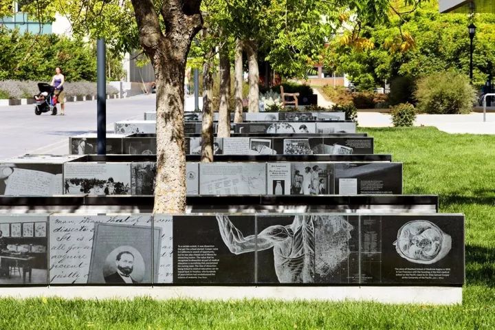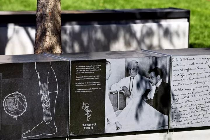 樹(shù)池坐凳上使用學(xué)校教學(xué)與研究的原始照片與文獻(xiàn),當(dāng)走出醫(yī)學(xué)院的檔案館時(shí),照片和文獻(xiàn)就會(huì)在無(wú)形中被人覽閱。