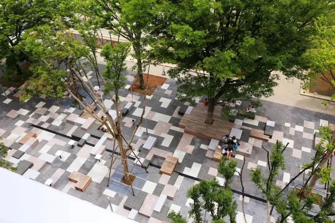 此案例已經(jīng)不止一次出現(xiàn)在生生景觀的推送中了。日本設(shè)計(jì)的簡(jiǎn)約、精致,在本案中發(fā)揮的淋漓盡致。整個(gè)廣場(chǎng),似乎除了幾顆樹(shù),幾處直線(xiàn)條座椅外,再無(wú)其他點(diǎn)綴。但是卻又讓人感覺(jué)清風(fēng)徐來(lái),深有意味。
