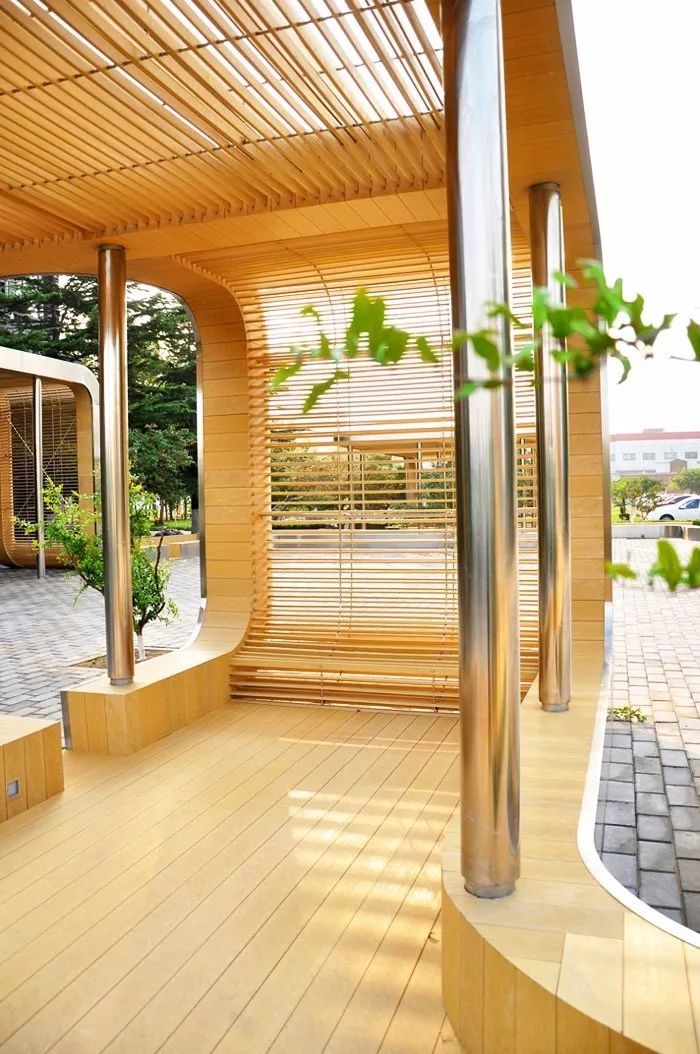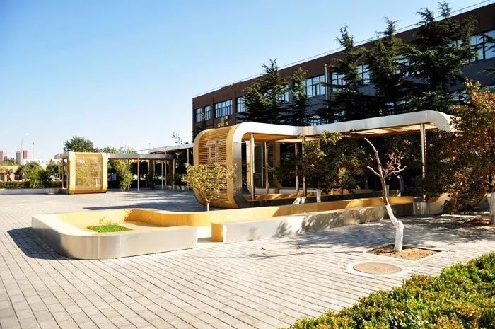 和廣大中國(guó)式校園一樣,校方最初的想法是安放一個(gè)紀(jì)念性的主題雕塑,但是設(shè)計(jì)師的解讀是學(xué)校真正需要的不是校園中心的紀(jì)念碑,而是一個(gè)集人文與功能為一體的集聚性空間,讓學(xué)生休憩的同時(shí)還能舉辦一些校園活動(dòng)。