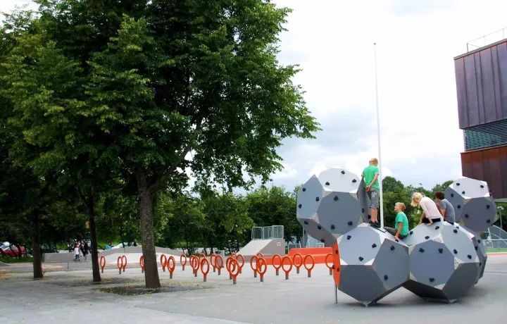 設(shè)計(jì)師著重打造一個(gè)對(duì)孩子和青少年來(lái)說(shuō)吸引力、多樣化、令人激動(dòng)的活動(dòng)空間,主入口旁邊就有一個(gè)可供攀爬的雕塑。