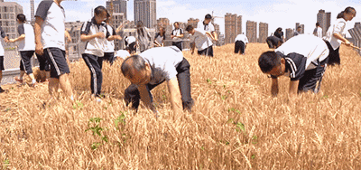 老師帶著學(xué)生下地收割,