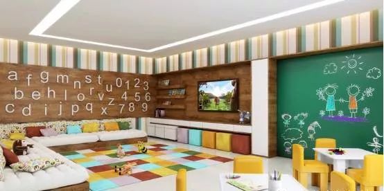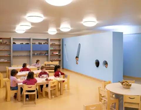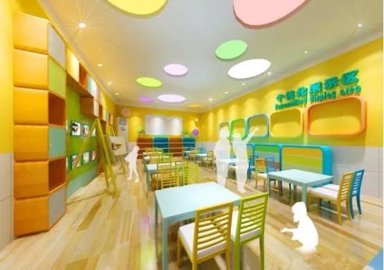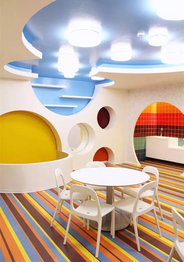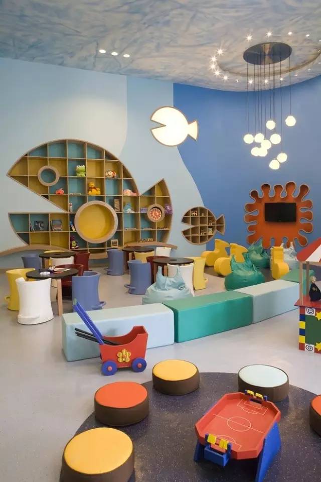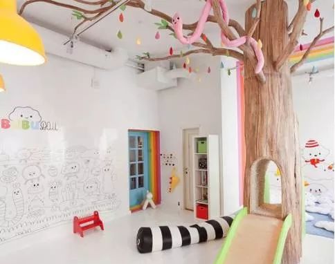 從地面、墻面到吊頂一直延伸設(shè)計(jì),以不同色塊激發(fā)孩子的無(wú)限想象力。