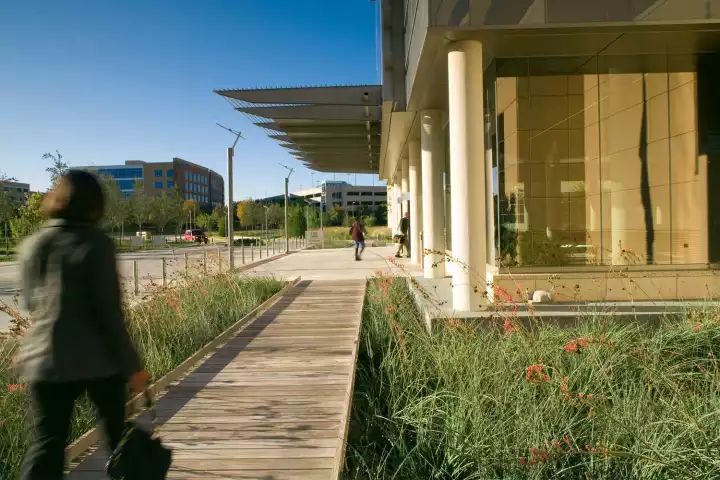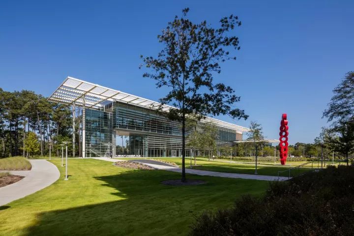 行政辦公樓的綠化設(shè)計(jì)一般采用規(guī)則式布局手法,在大樓的前方,一般與大樓的入口相對(duì)處,設(shè)置花壇、雕塑或大塊草坪、噴泉,在空間組織上留出開朗空間,有利于體現(xiàn)景觀,突出辦公大樓的主導(dǎo)地位。植物配置起豐富景觀的作用,襯托主體建筑藝術(shù)的美。