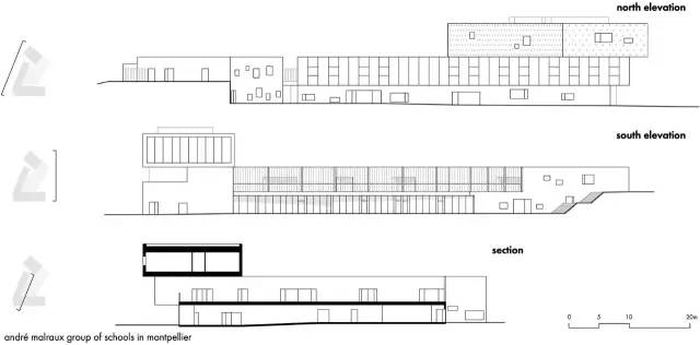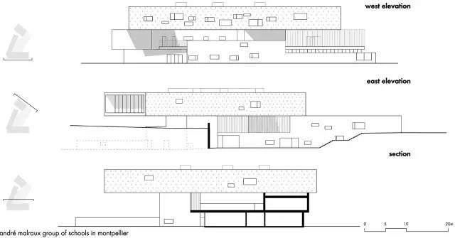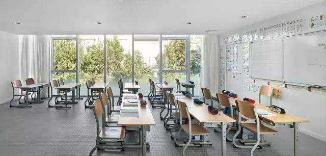 體塊上的開窗數(shù)量則根據(jù)朝向和室內(nèi)空間對光照的需求度而有所差異。交通空間的光線則來自于露臺或是高高的天窗。南北兩側(cè)的落地玻璃窗讓課室空間沐浴在充足的自然光線之下,空氣通過對流系統(tǒng)穿過建筑,帶來陣陣涼爽的清風(fēng)。