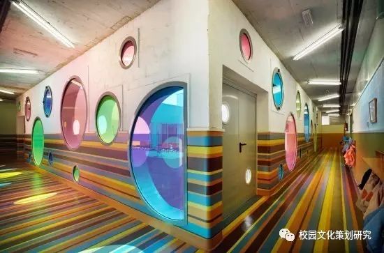 而公共區(qū)域設(shè)計(jì)為彩色:以告訴小朋友們世界是多彩的、是一個(gè)組合的群體。