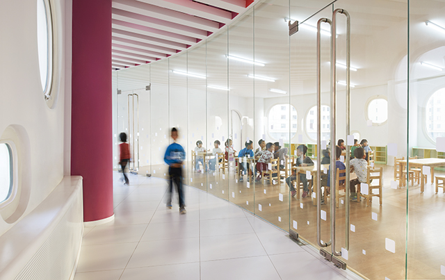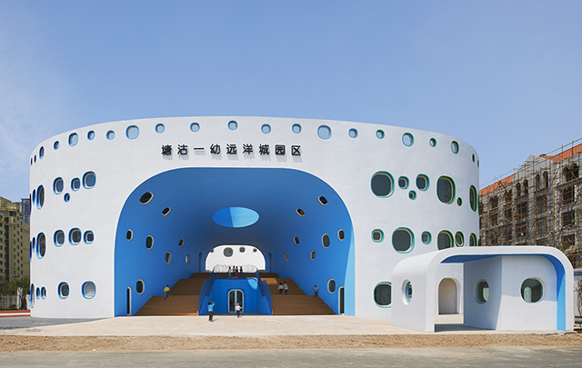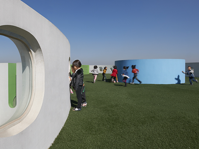 循環(huán)幼兒園位于天津,創(chuàng)建了一個(gè)勤奮的公寓塊的環(huán)境和豐富多彩的教育斗獸場之間的鮮明對比。