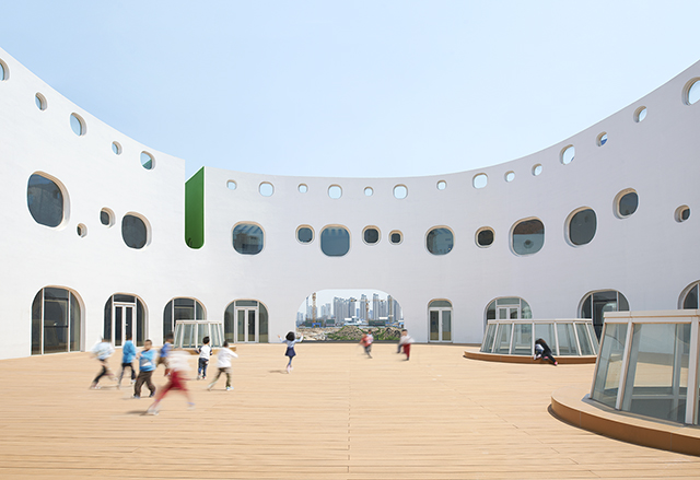 整個(gè)的建筑空間是一個(gè)環(huán)形,設(shè)計(jì)團(tuán)隊(duì)希望孩子們在這里體會(huì)到真正的自由與歡樂。