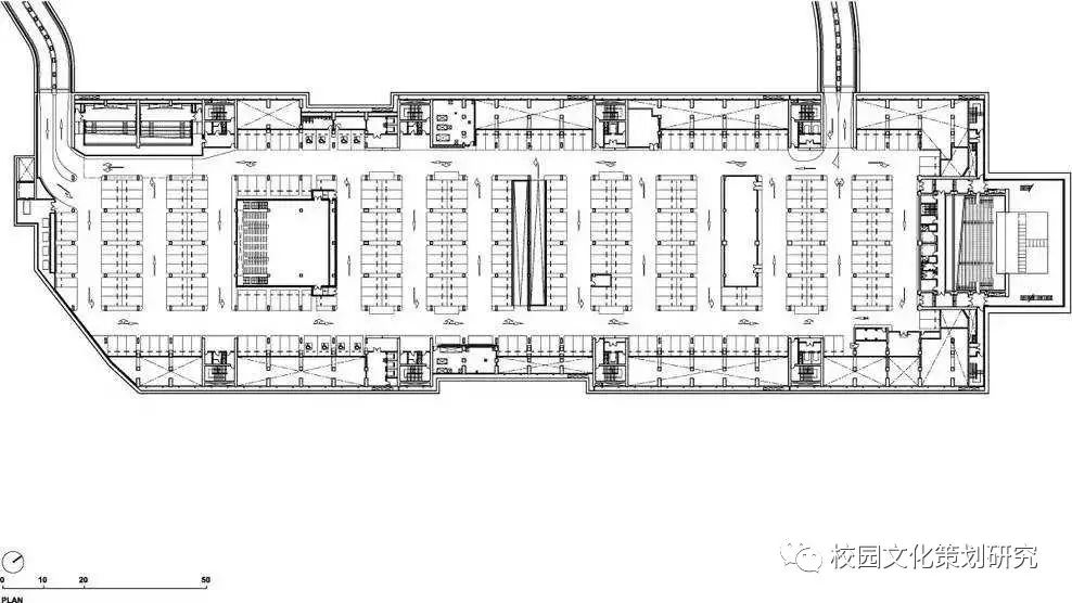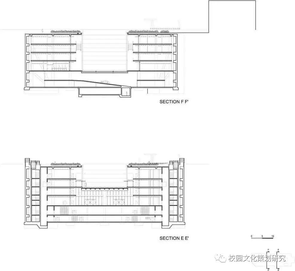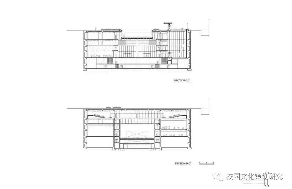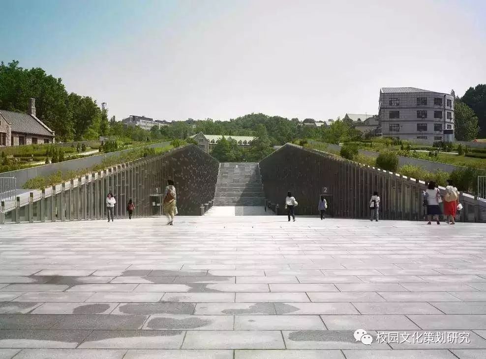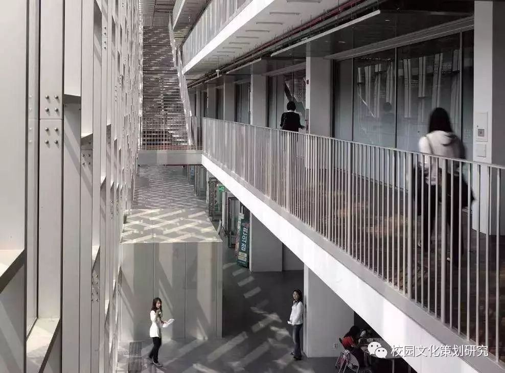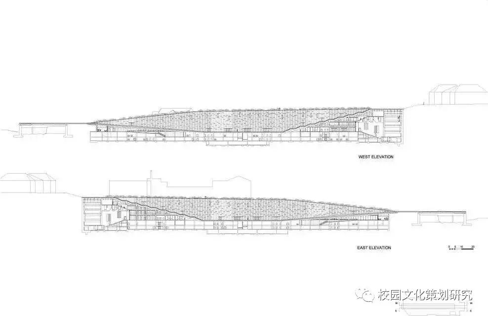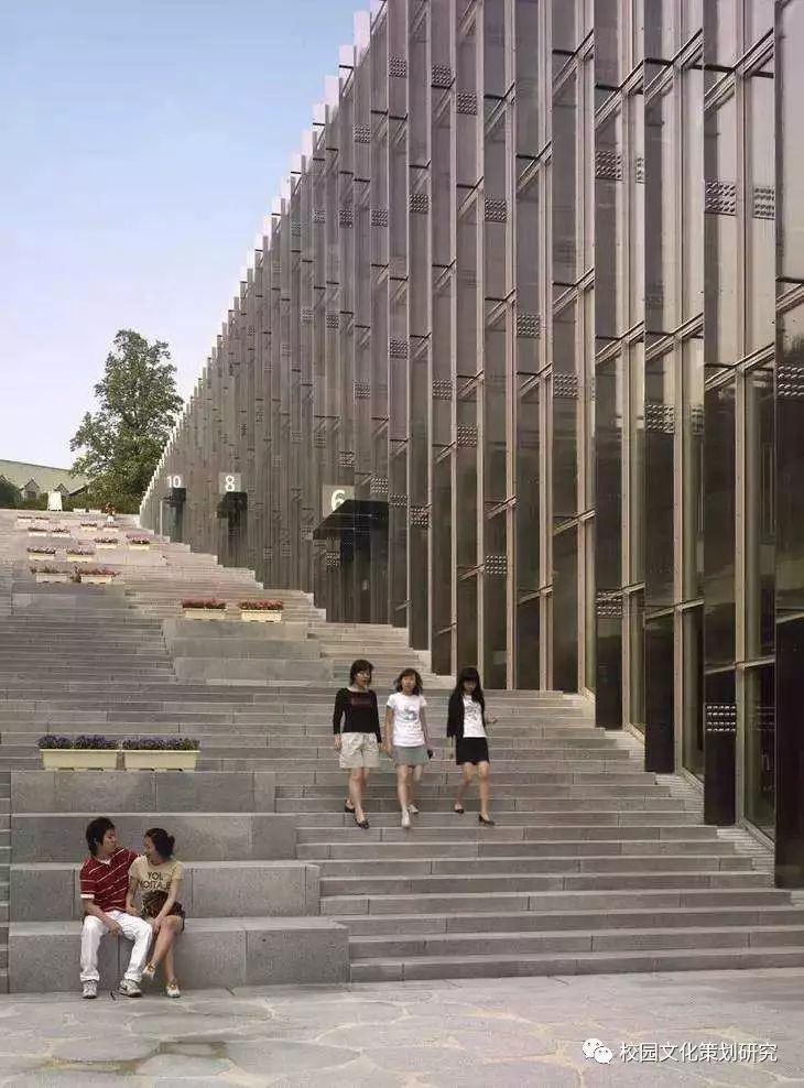 建筑別稱是“校園谷”,基地位于山谷,且建筑設(shè)計(jì)本身也像峽谷。大學(xué)建筑群體設(shè)計(jì)依山就勢(shì),空間序列非常有趣。