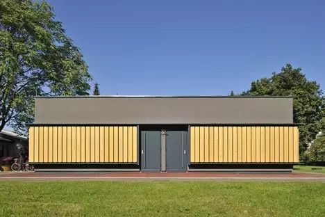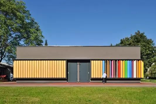 用木材制作的百葉窗,可以被自由轉(zhuǎn)動(dòng),讓孩子們?nèi)ルS時(shí)改變學(xué)校的色彩……