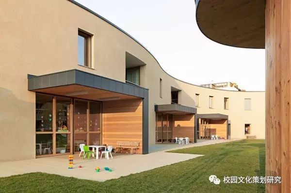 意大利北部城市博爾扎諾(Bolzano)通過(guò)國(guó)際競(jìng)賽獲得了兩所學(xué)教建筑的設(shè)計(jì)方案。MoDus Architects設(shè)計(jì)的這兩座建筑包含幼兒園、學(xué)前教育以及家庭中心的功能,校園位于城市南郊一個(gè)新的住宅區(qū)的中心位置。兩座建筑相鄰,直線形狀的建筑供給較大的學(xué)齡前兒童,自由曲線的當(dāng)然是給更小的朋友用的。