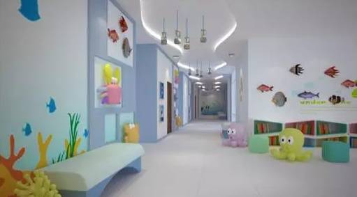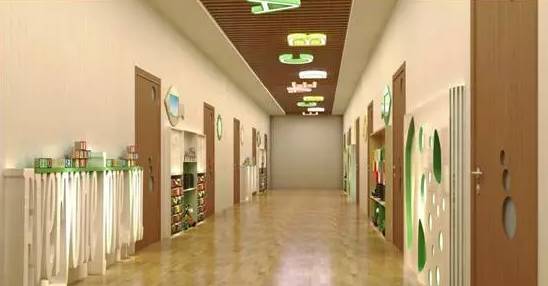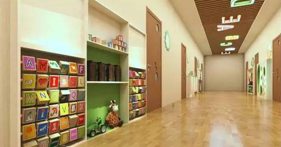 宿舍走廊的設計給人溫馨之感,原木色的走廊,加以色彩多樣的益智類游戲設施的設置,增添了家的感覺。