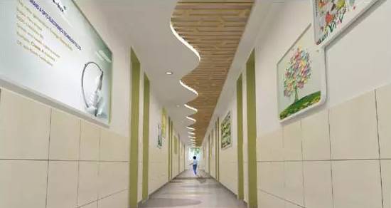寢室走廊,吊頂極具童趣森林感覺,整個走廊以淡雅的米色和白色為主,簡潔大方,給人靜謐之感。