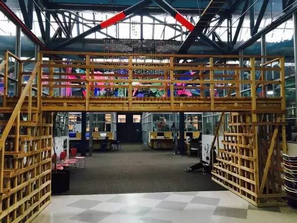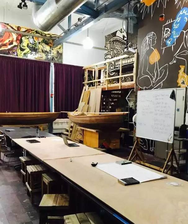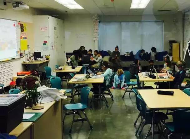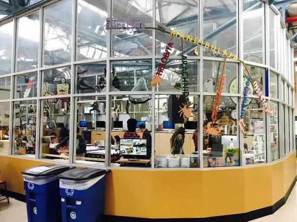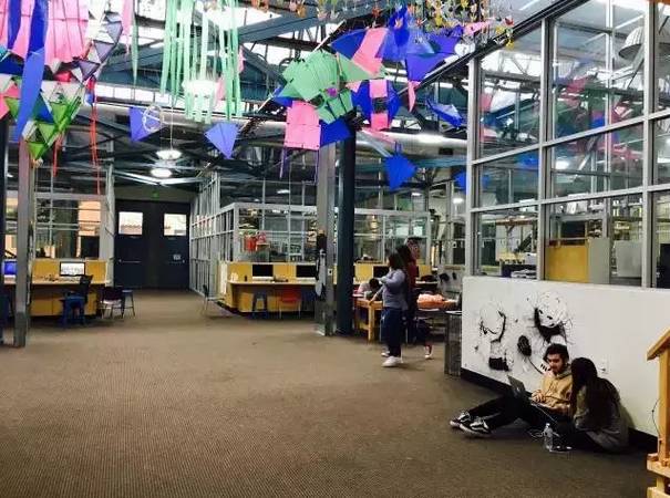 不要被High Tech High 的名字騙了誤以為是一所高中,其實它是K12十三年一貫制的。隔壁樓的初中部基本格局跟高中很像,只是四合院外墻多了一個老師辦公和接待孩子們隨時求助的屋子。兩間教室之間的隔斷還可以被打開,教室和辦公室都是透明的,被謔稱為Fish Bowl魚缸,魚缸內(nèi)外的大人孩子們都很自在而互不打擾。