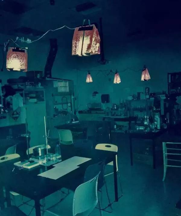 Blake最喜歡的燈關掉后就變成暗房的教室。