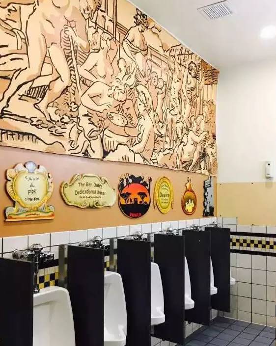 整個學校沒有一件買來的裝飾,所有的呈現(xiàn)都是跨學科的學習過程和成果。最容易被跨的學科當然就是藝術,所以整個空間充滿了濃厚的藝術氣息,即使在廁所里,也是滿墻的壁畫播放著悠揚的爵士,誰會不喜歡這種撒泡尿都在接受藝術熏陶的地方。