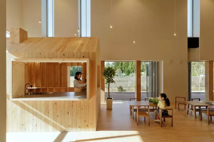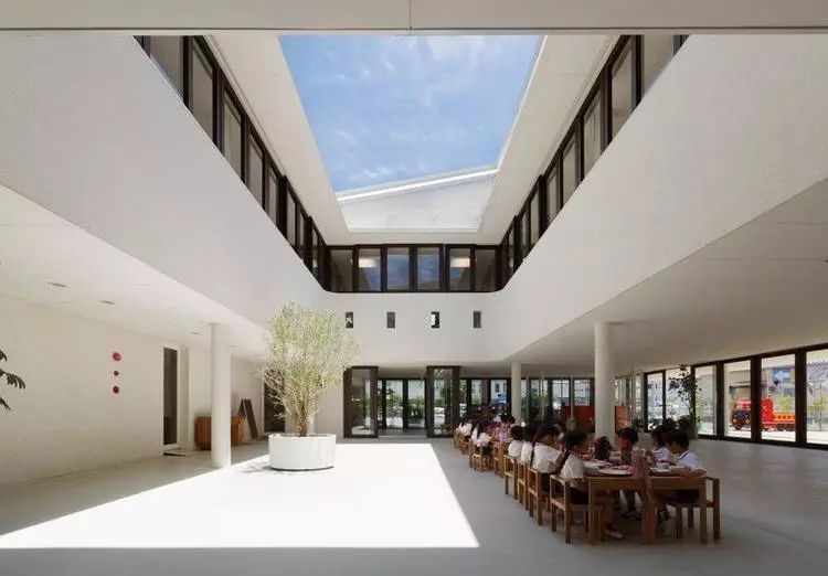 對于幼兒園整體環(huán)境的構(gòu)造,日比野在設(shè)計的時候不會很多的使用特別鮮艷的顏色或者素材,并且不提倡過度依賴空調(diào)和照明設(shè)施。