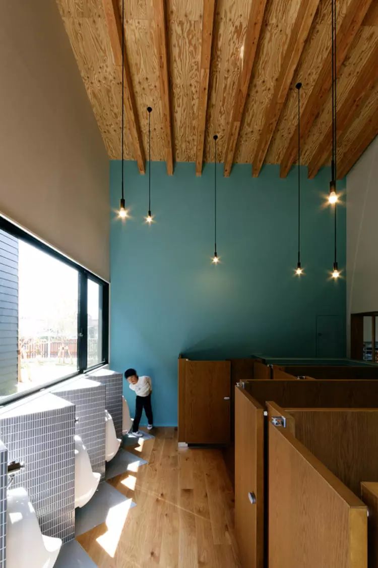 相較于傳統(tǒng)學(xué)校設(shè)施中的廁所,在日比野的設(shè)計中,廁所基本上都是朝南的,而且有著大面積的玻璃窗戶,讓風(fēng)、陽光可以自然通過。