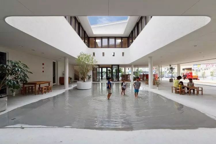 我們曾經(jīng)報道過這個在下雨天就變成“水坑”的 Daiichi 幼兒園,它曾經(jīng)獲得過 2015 年的日本 Good Design Award。它并沒有花哨的設(shè)計,純白色的建筑,圍合出來一個簡單的天井。這里成為了孩子們心中的樂園,不管是雨天、雪天還是晴天,孩子們都可以在戶外玩耍。