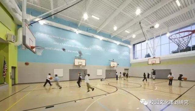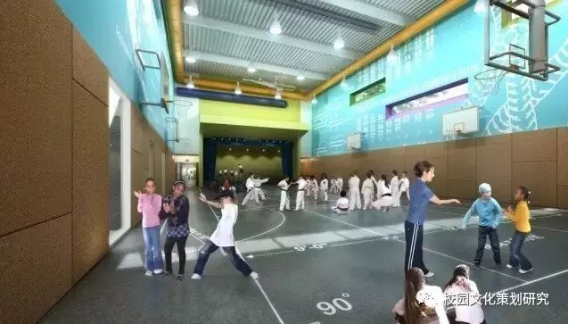 另一方面,學(xué)校非常注重環(huán)境細(xì)處的精心設(shè)計(jì),以充分發(fā)揮空間的可能課程價(jià)值。例如將斐波納契數(shù)列規(guī)律與窗戶的開間大小相結(jié)合起來,1,1,2,3,5的數(shù)列排列激發(fā)孩子們深度思考。在體育館中,則充分地將數(shù)學(xué)圖形、原理與數(shù)學(xué)測(cè)量等知識(shí)融入到場(chǎng)館之中。這些細(xì)小環(huán)境的精心設(shè)計(jì),都是富有數(shù)學(xué)啟迪與教育價(jià)值的建筑文化。