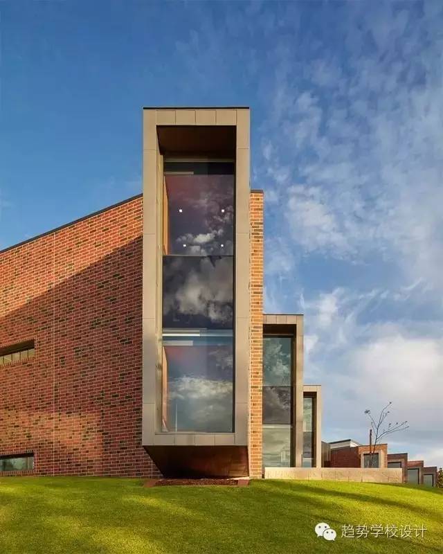 在紅磚墻的側(cè)面延伸出玻璃窗,