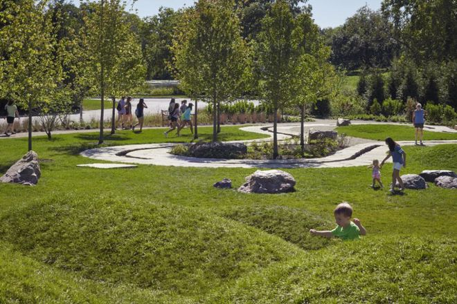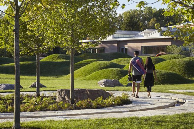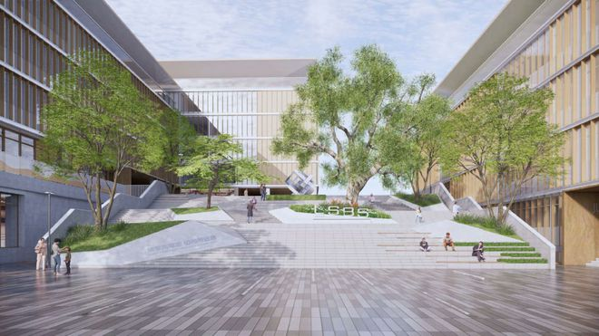 設(shè)計(jì)師在對(duì)香港中文大學(xué)(深圳)思廷學(xué)院進(jìn)行景觀提升規(guī)劃時(shí),盡量讓師生能夠活動(dòng)的空間延伸到綠化之中,做到“身處綠色中”的程度。諾大的書(shū)香草坡將嚴(yán)謹(jǐn)?shù)慕虒W(xué)文化與景觀建筑和藝術(shù)創(chuàng)作融為一體,充滿(mǎn)信息的獨(dú)特半自然景觀,提升了學(xué)校的活力,讓大家可以在愉悅的環(huán)境中暢游知識(shí)的海洋。MUSE字母、果樹(shù)空間、木平臺(tái)堆疊的屋頂花園與種植,將思廷書(shū)院定義成為一個(gè)學(xué)習(xí)生活與自然藝術(shù)相交融的場(chǎng)所。