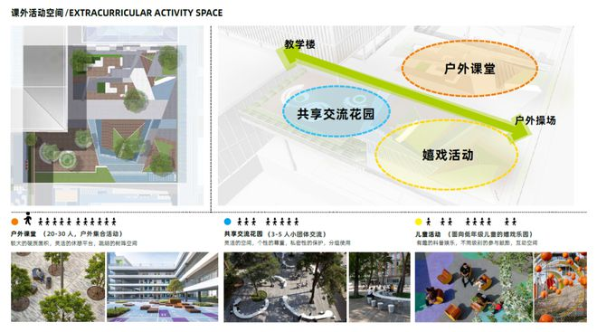 ??诠_學(xué)校的景觀與建筑設(shè)計(jì)秉持“空間即教育”的理念,融入了海南南洋特色的“騎樓空間”串聯(lián)校園,模糊傳統(tǒng)室內(nèi)教育形式,通過(guò)開(kāi)展生動(dòng)有趣的戶(hù)外教育,讓學(xué)生在校的時(shí)間和空間共同構(gòu)成一個(gè)回歸自然、感受自然的有機(jī)體,打造一處理想的自然教育空間。