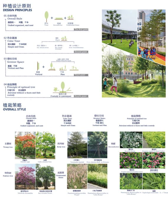 植物設(shè)計(jì)主要配以適宜校園地區(qū)的常用景觀植物為主,植物的種植隨地形、位置的變化而變化,通過(guò)植物來(lái)營(yíng)造不同的自然空間,盡可能做到四季有景,從而給孩童們帶來(lái)豐富的五感體驗(yàn)。