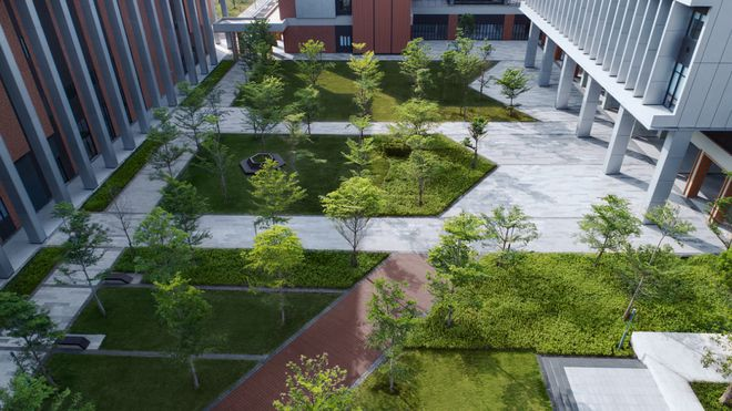 一方面校園應(yīng)具有良好生態(tài)景觀,另一方面作為新建校園,勢(shì)必著重創(chuàng)建充滿(mǎn)時(shí)代氣息、文化氛圍的環(huán)境,與建筑景觀系統(tǒng)完美結(jié)合。可以采取道路、場(chǎng)地整體規(guī)則式布局與局部自然式布局相結(jié)合,在規(guī)則中體會(huì)規(guī)矩與規(guī)律,在自然中進(jìn)行陶冶與感受親切。