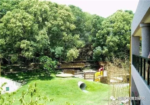臺灣道禾實驗學校,尊崇“人本關懷、自然親近、探索創(chuàng)造、互動參與”的理念,所用的教材、教具,空間布局都充滿了親近自然的元素。順勢而為、渾然天成,利用校園一側(cè)的小丘地勢,學校為孩子建造了一條秘密地道,滿足孩子的好奇心和喜歡探險的心理,地道與懸空繩索走廊、沙坑、滑滑梯一起,成為孩子們最喜歡的室外樂園。在下雨天,可以通過地道直接到達小丘上的造紙工作坊。這個小丘,也是學校開展活動時的天然看臺,這顆大樹平行生長的粗壯枝干,就成了孩子們的座椅,可以選一個舒服的位置盡情觀賞,即使平時,也會經(jīng)常光顧來爬它一番。